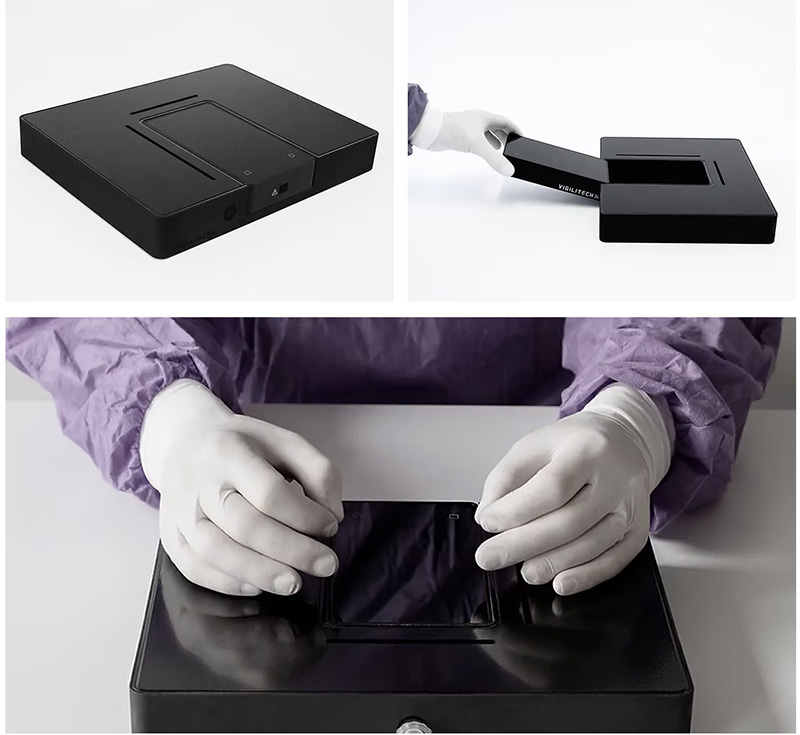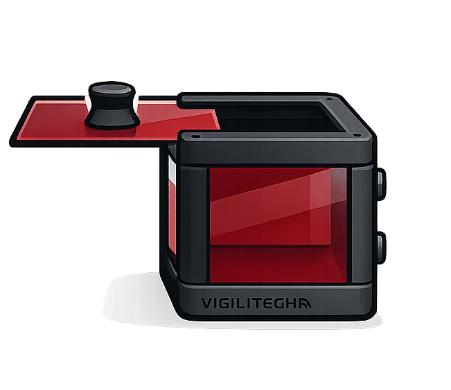 Leakproof box fits precisely on the MARTA Pad for safe, efficient induction. it is made from red transparent Plexiglas to reduce any light-induced stress.