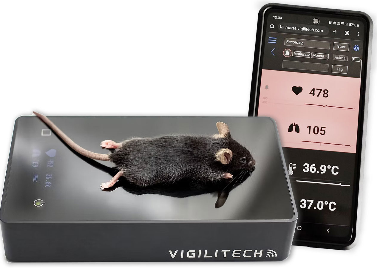 The MARTA system is a contact-free solution and ecosystem for real-time monitoring of heart rate, respiration, and temperature in anesthetized mice and rats.